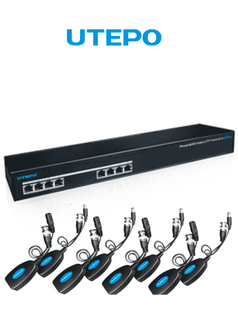 UTEPO UTP108PVHD2 - Kit de transceptores de video y energía para 8 canales, receptor 1080p hasta 200m, incluye 8 transceptores para cámaras hasta 1080p, envía video y energía en un solo cable UTP