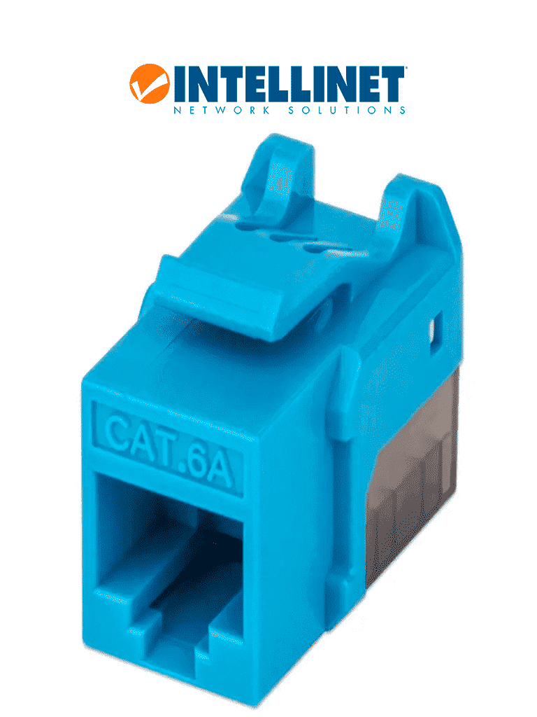 INTELLINET 772334 - Jack Keystone Cat6a FastPunch UTP, azul, contactos chapados con 50µ de oro, soporta filamento multifilar y sólido de 23 a 26 AWG Sobre Pedido