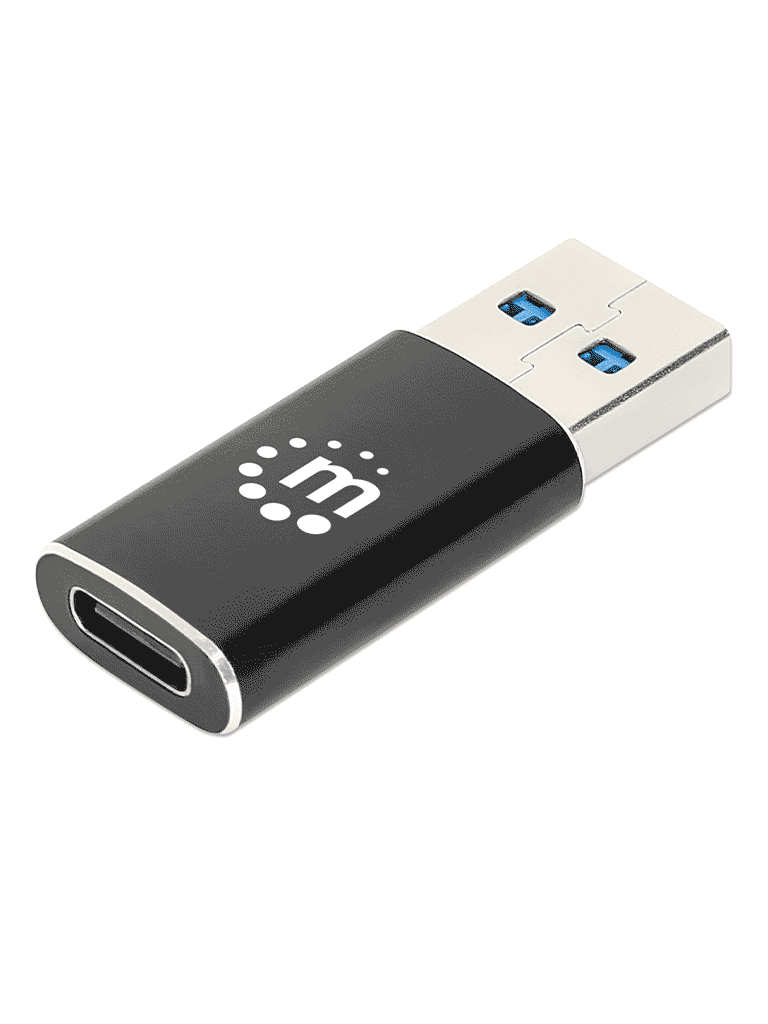 MANHATTAN - 153980 - Adaptador de USB-A a USB-C Gen2 / USB 3.2 Gen 2 Tipo-A Macho a Tipo-C Hembra, 10 Gbps SuperSpeed+ USB, 3 A, Aluminio, Negro