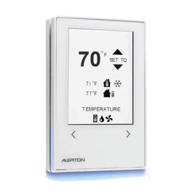 El sensor de pared Microset 4 de Alerton ofrece un aspecto elegante y moderno que se adapta perfectamente a cualquier edificio. Su interfaz de usuario con pantalla táctil de vidrio reforzado tiene la capacidad de mostrar el punto de ajuste, la temperatura ambiente y la temperatura del aire exterior. La humedad relativa y la temperatura ambiente son importantes.